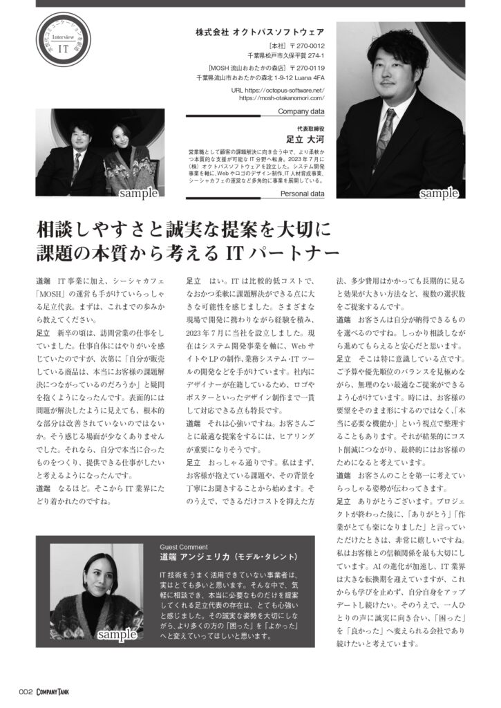 このたび、株式会社オクトパスソフトウェアがCOMPANY TANK誌(5月号)に掲載されましたことをお知らせいたします。